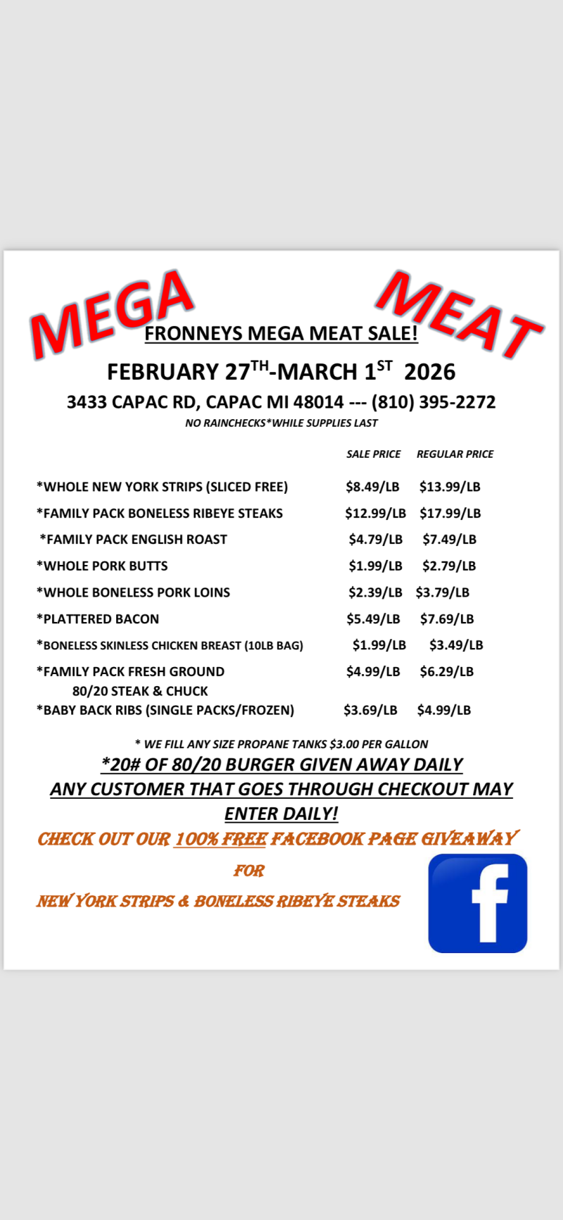 Welcome to Fronney's Foods! Your family-owned and operated full line grocery store in Capac, Michigan since 2013. We're dedicated to bringing you first class customer service, quality products, and an enjoyable experience every time you step through our doors.
